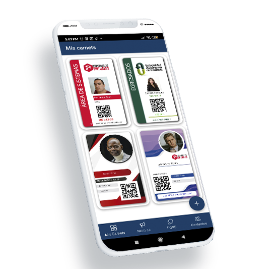 Créa y gestiona fácilmente tus carnets, sin necesidad de preocuparte por los costos de impresión y envío. Además, nuestros carnés digitales son más seguros que los carnets físicos, ya que incluyen medidas de seguridad códigos QR dinámicos.